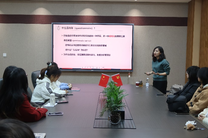 为提高本次实习质量,确保学生能够科学、有效地设计调查问卷,顺利完成本次实践教学活动,英语系特邀我院张姗姗博士为同学们做了“极简问卷设计”专题讲座。讲座围绕问卷设计的核心问题,着重从问卷组成、问题及答案类型、常见错误、特殊问题设计、问卷设计流程及问卷长度与题目顺序等方面进行深入解读。张博士凭借深厚的专业知识和丰富的实践经验,深入浅出地为同学们分析了问卷设计的方法与意义。