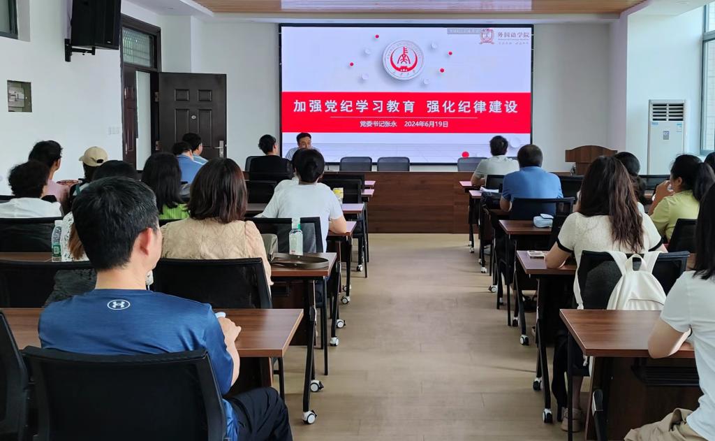6月19日下午,学院党委书记张永在北校区外语学院二层223报告厅为中心组成员、机关党支部和大英二部党支部全体党员讲授党纪学习教育专题党课。