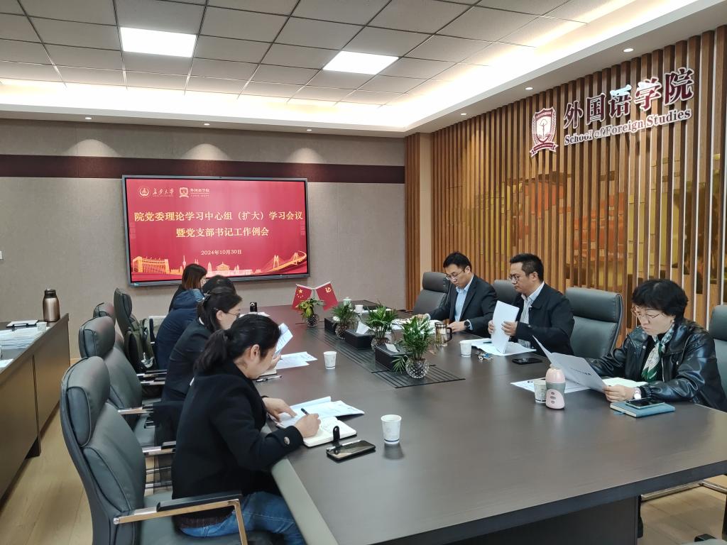 10月30日,院党委理论学习中心组(扩大)学习会议暨党支部书记工作例会在北校区学院215会议室召开,会议传达学习习近平总书记系列重要讲话精神,总结学院党纪学习教育情况。院党委书记张永主持会议。