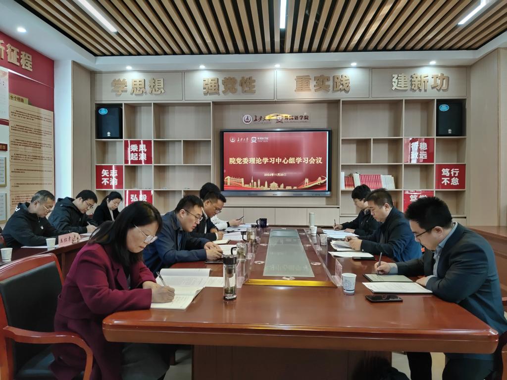 11月20日,院党委理论学习中心组在北校区学院党建活动室召开学习会议,集中学习党的二十届三中全会精神和全国教育大会精神,联系思想、工作实际进行专题研讨。学校第二巡听旁听工作小组郭万江、张久鹏、许文强到会指导,中心组全体成员参加会议。会议由院党委书记张永主持。