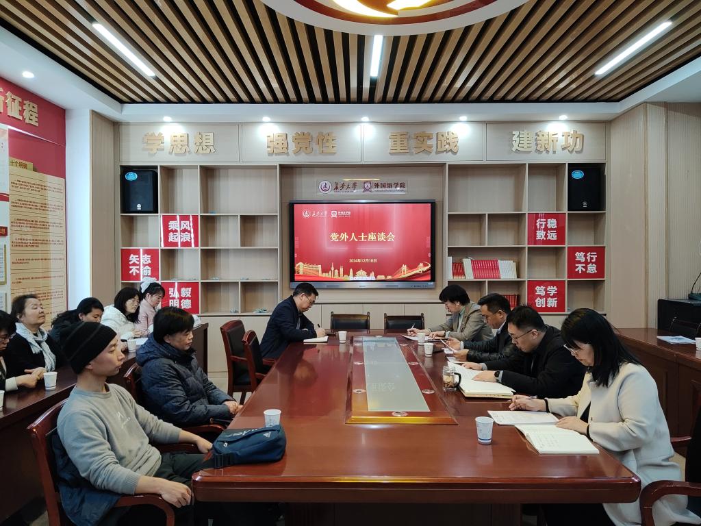 12月18日,学院在北校区院党建活动室召开党外人士座谈会。全体领导班子成员以及各民主党派、无党派人士和群众代表参加会议。
