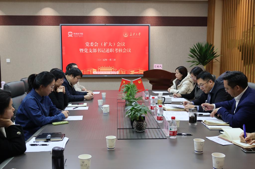 1月2日,学院在215会议室召开党委会(扩大)会议暨党支部书记述职考核会议,学院党委委员、纪委委员、各师生党支部书记、有关科室负责人和师生党员代表参加会议,会议由党委书记张永主持。