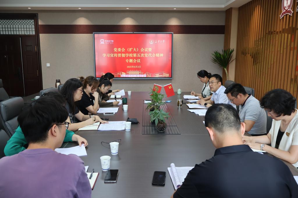 会议专题传达学习了学校第五次党代会党委工作报告和纪委工作报告。与会人员一致认为,学校第五次党代会为校院各项事业改革建设发展指明了方向和目标,会议的胜利召开是全体师生员工政治生活中的一件大事,也是一堂学习党的知识、严明党的纪律规矩、以政治建设为统领全面加强党的建设的生动党课。