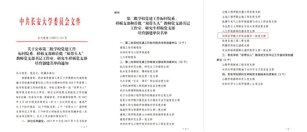 近日,学校党委公布了第二批学校党建工作标杆院系、样板支部培育创建名单,我院大学英语教学一部党支部获批“第二批学校党建工作样板支部培育创建单位”。