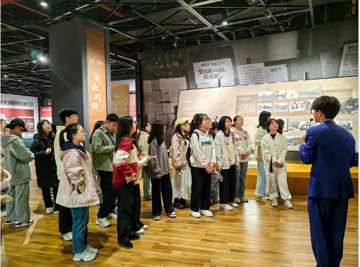 同学们跟随着讲解员的步伐,漫步在历史长廊中,聆听讲解、阅读史料、瞻仰文物、观看影像。“弘毅明德,笃学创新”的校训在讲解员生动的解说中,具象化为一个个鲜活的长大人,奔赴在祖国大江南北的发展建设一线,书写一代代的青春篇章。