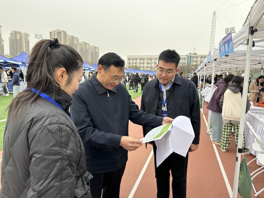 双选会现场,院党委书记张永、院长冯正斌、党委副书记勾小群深入会场,与相关企业进行洽谈,详细了解用人需求、岗位供给等情况,同时听取用人单位对学院人才培养、就业服务等方面的意见建议,并与学生深入交流,了解其就业需求,现场提供就业指导。