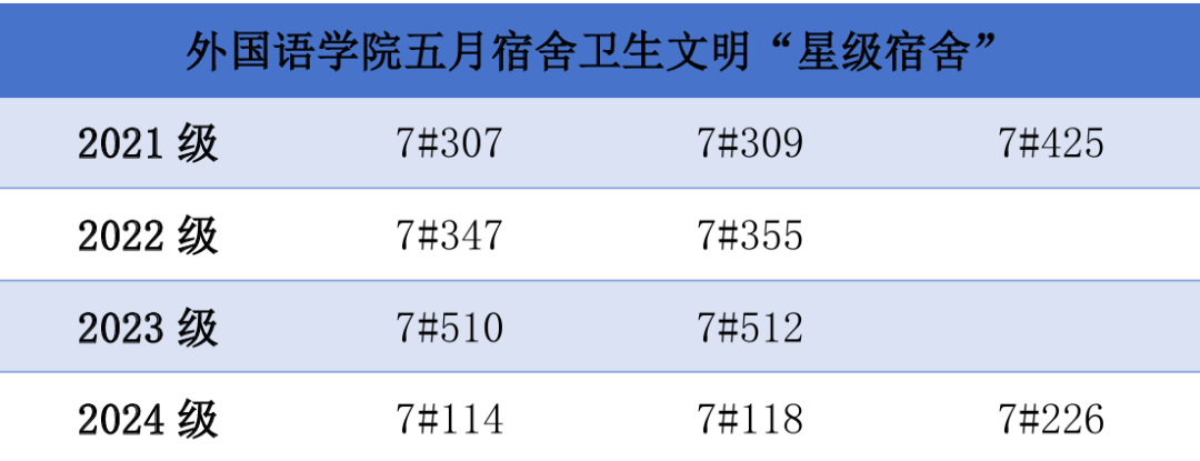 2025年5月12日至15日,6776永利集团学生会权益服务部对本科生宿舍进行了卫生文明大评比,现将“星级宿舍”公示如下:
