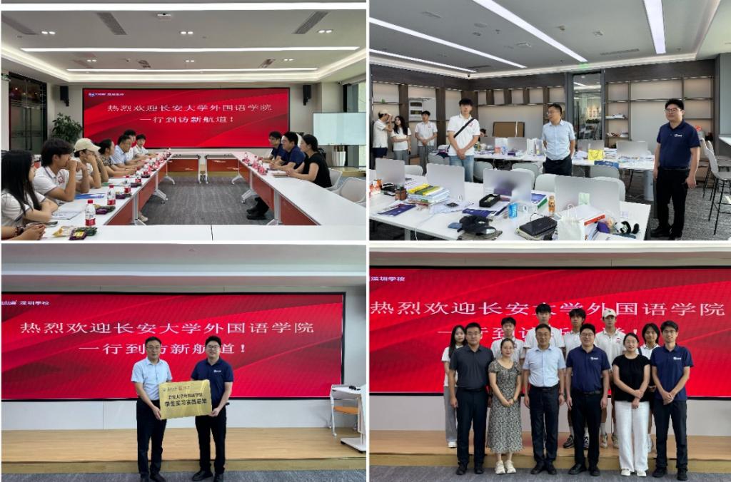 在新航道深圳学校,校长常德胜详细介绍了新航道在语言培训、国际教育规划等领域的发展现状、师资需求及人才标准,重点说明了其对于人才招聘、实习岗位的相关要求。张永从专业设置、课程体系、学生实践能力培养等方面介绍了学院的人才培养特色。双方就国际化人才培养、学生实习实践、毕业生人才储备等方面达成共识,将持续加强全方位合作,为学生提供更多实践机会和职业规划指导。座谈会后,张永为学生实习实践基地授牌。