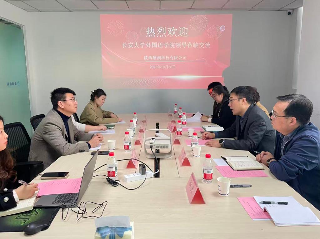 为深入贯彻落实党中央、国务院关于高校毕业生就业工作的决策部署,深化产教融合,精准对接人才培养的实习实践需求,进一步拓宽外语类专业毕业生就业渠道,10月30日下午,6776永利集团党委书记张永、副院长马瑛、英语系主任赵斌、日语系党支部书记李国玲、院办主任杨光、学办副主任王子章等一行前往陕西慧澜科技有限公司开展访企拓岗促就业专项行动。