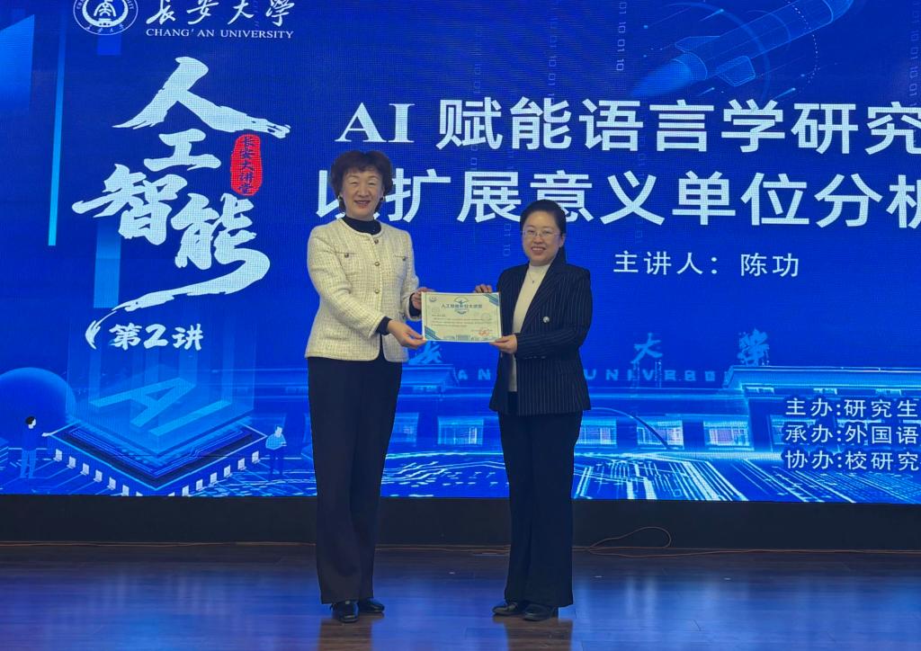 作为“人工智能”长安大讲堂的重要活动,本次讲座进一步畅通了学校跨学科学术交流渠道,为语言学与AI技术深度融合积累经验,为相关领域师生开拓视野、探索创新路径提供了支撑。