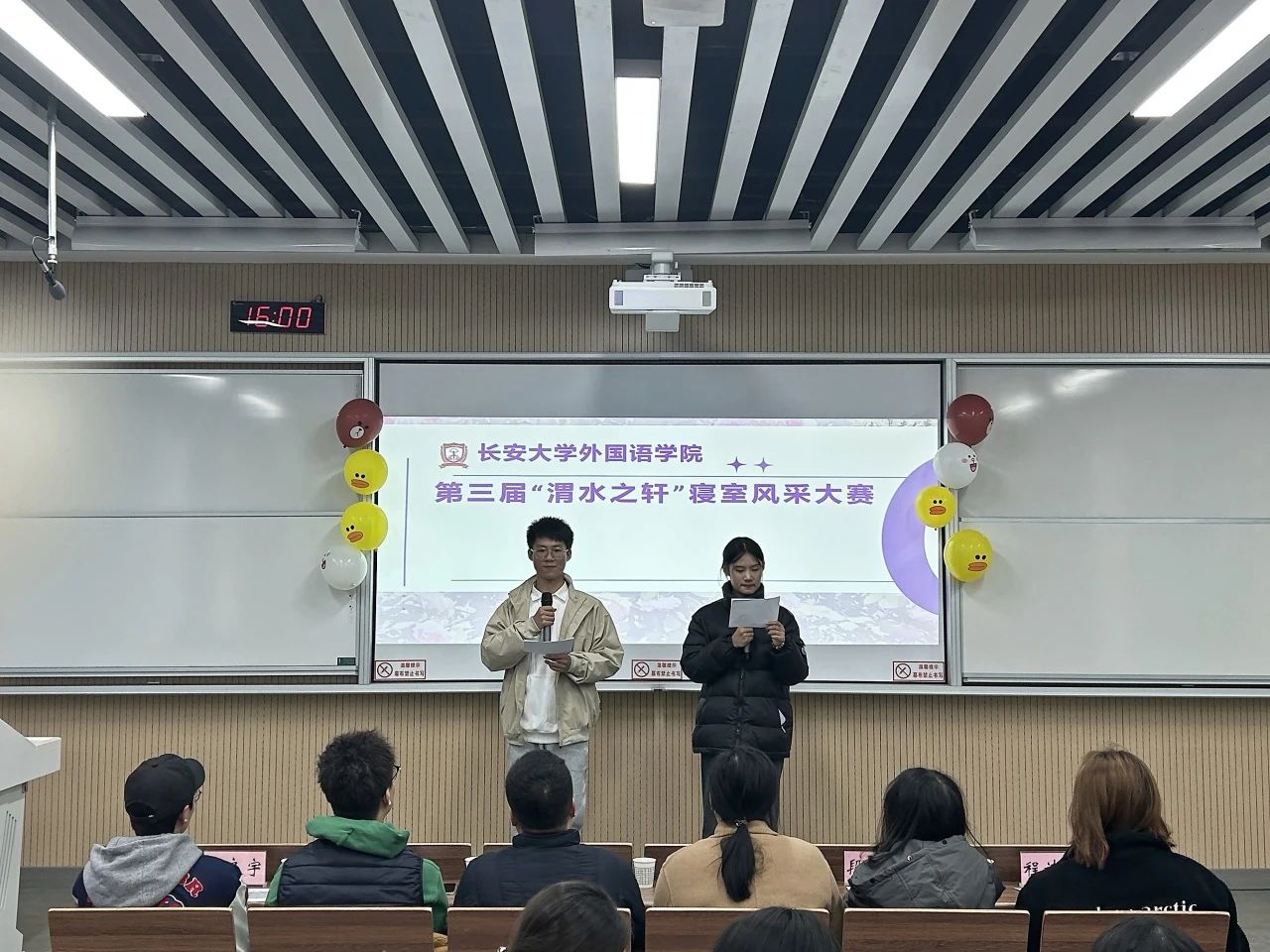 主持人樊宇轩和刘琳上台介绍了本次大赛的流程和规则,宣布本次6776永利集团第三届“渭水之轩”寝室风采大赛正式开始。