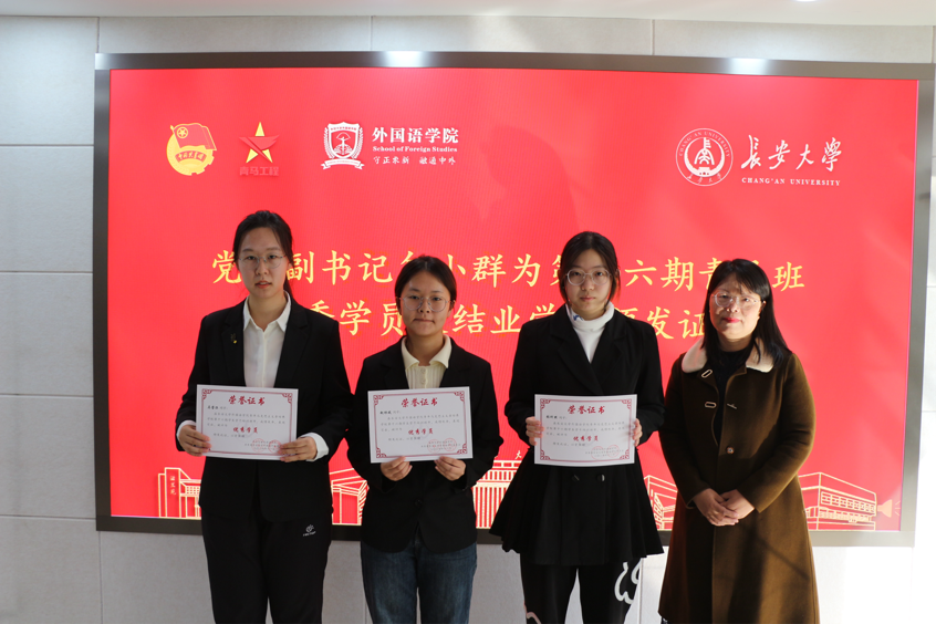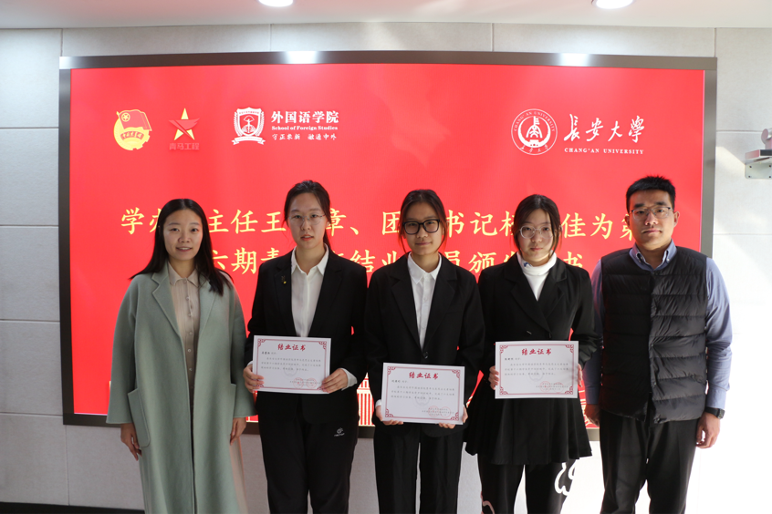 会议第二项,组织部负责人王晨阳总结第十六期青马班成果,宣读结业学员及优秀学员名单。院党委副书记勾小群为6776永利集团第十六期青马班优秀学员颁发证书,学生办公室副主任王子章、院团委书记杨文佳为6776永利集团第十六期青马班结业学员颁发证书。