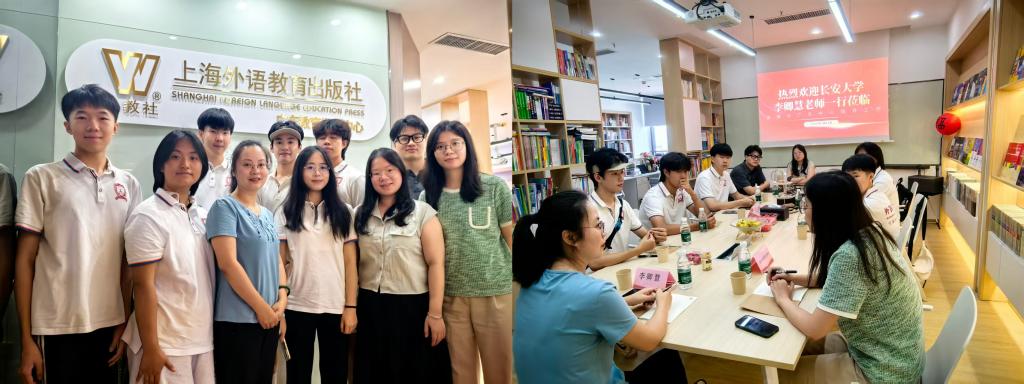 7月24日下午,实践队走访上海外语教育出版社广东教育发展中心。双方围绕“词达人杯”、“跨文化能力大赛”等赛事体系展开深度交流,并对比探讨了陕西地区赛事发展情况。队员们积极了解教育出版前沿动态与大湾区多元教育机遇,认识到外语竞赛不仅锤炼语言技能,更旨在引导学子成为“精通语言的匠人”和“讲好中国故事的使者”。