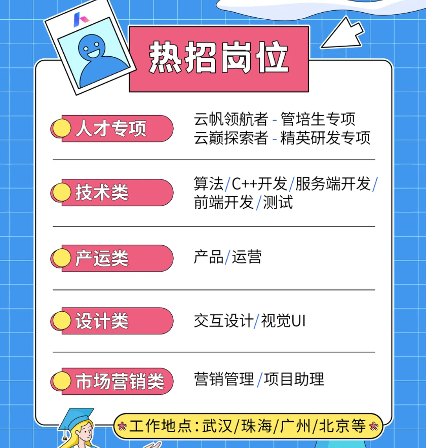 国内领先的办公软件产品和服务提供商,于 2019 年上市,致力于AI赋能数智化办公探索;WPS、WPS AI、WPS 365、WPS会议、云文档等多线产品为海内外用户提供办公服务;有竞争力的薪资水平、全面的培养晋升机制、海景办公、六险一金、团队旅游…