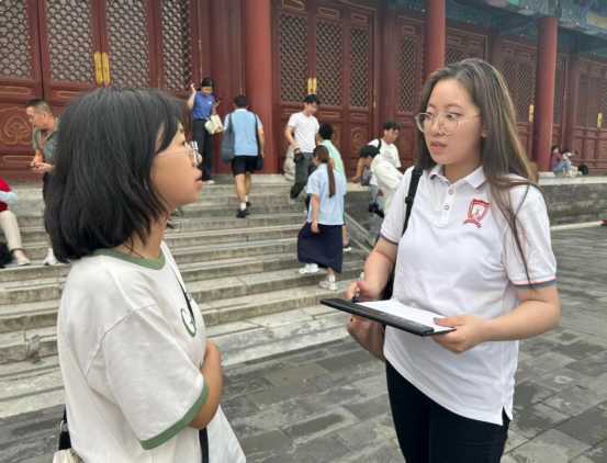实习体验,助力文化交流。实践队队员前往北京师范大学附属实验中学艺术团暑期英国夏令营行前会议现场,团队成员们作为实习志愿者参与其中。体验组织中外交流夏令营繁琐细致的工作,了解专业的实际工作内容,如前期策划、宣传推广、签证办理、活动设计等,理解国际交流中的跨文化交际,并与行业人员进行访谈交流,拓宽了对于专业就业的视野,也探索了跨文化交际、英语专业就业情况的新视角。