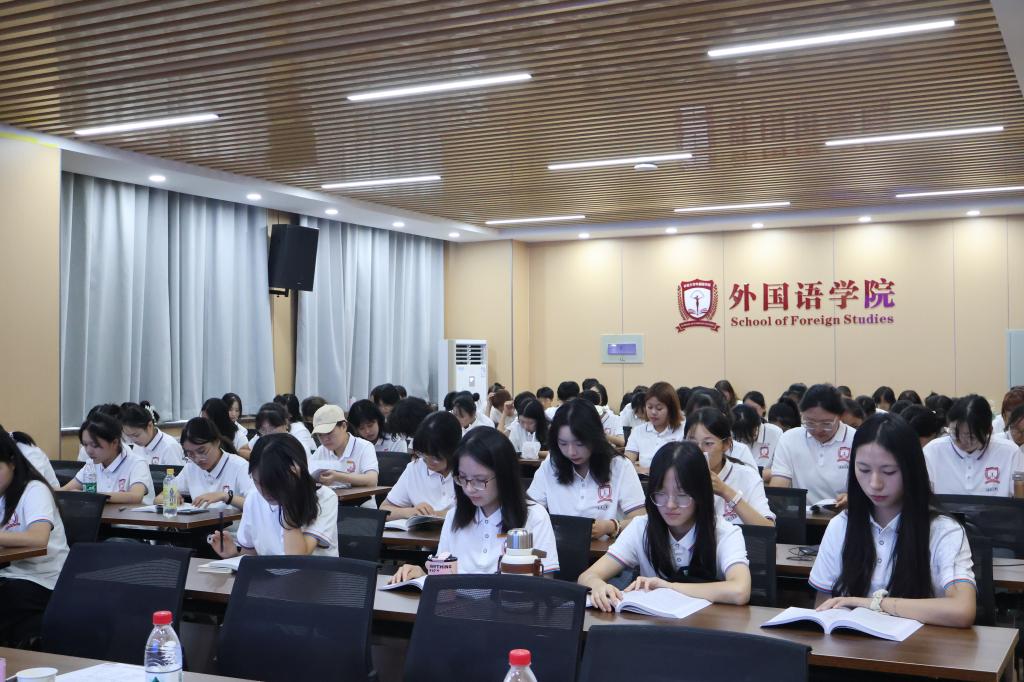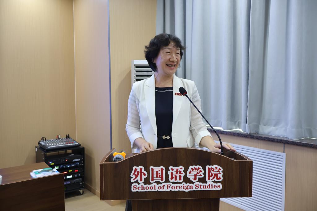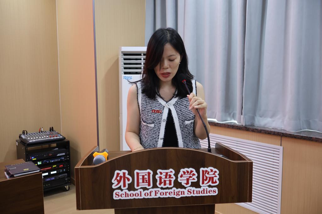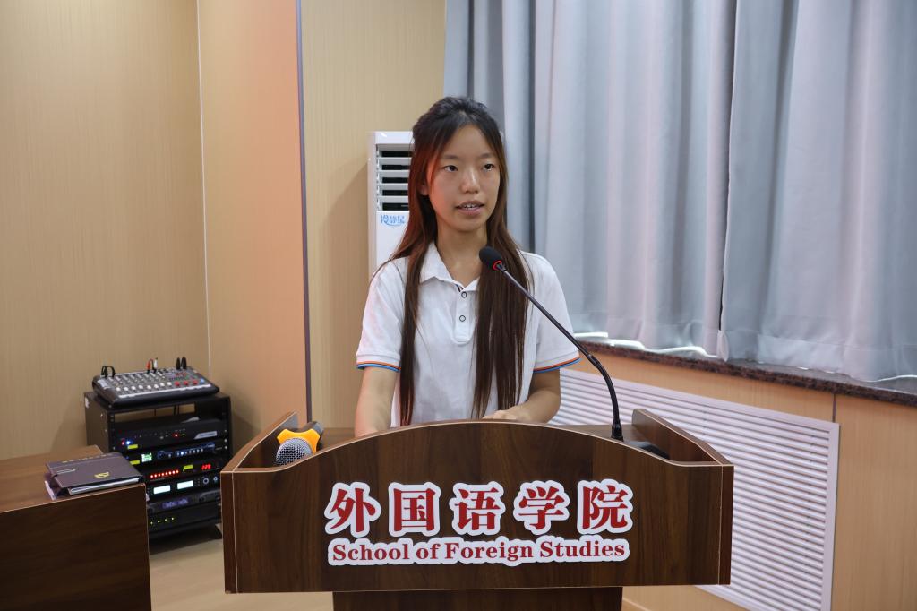 随后,在校生代表保琎同学再次向新生们致以热烈的欢迎,并分享了自己在外语学院的学习与生活体验。她鼓励新生们要积极参与学院的各项活动,拓展自己的视野与技能,与师长、同学共同营造一个团结友爱、互帮互助的大家庭。