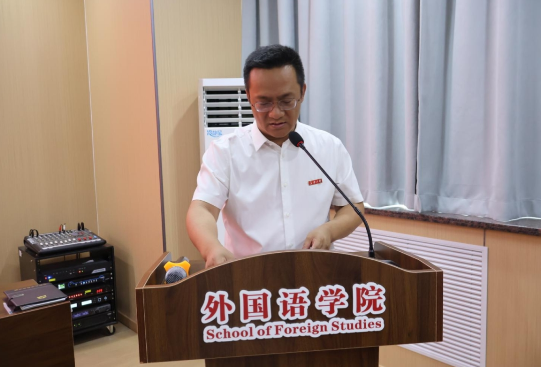 活动伊始,院长冯正斌教授代表学院致辞,他对60名本科新生和22名研究生新生的到来表示热烈的欢迎和衷心的祝贺,他向新生们介绍了学校和学院的发展历程,着重向大家介绍了外语学院的学科特色、专业布局和人才培养质量。他勉励全体新生矢志不渝,心怀家国,做有担当的外语人;博学多才,锐意进取,做有学识的外语人;知行合一,勇于实践,做有行动力的外语人。