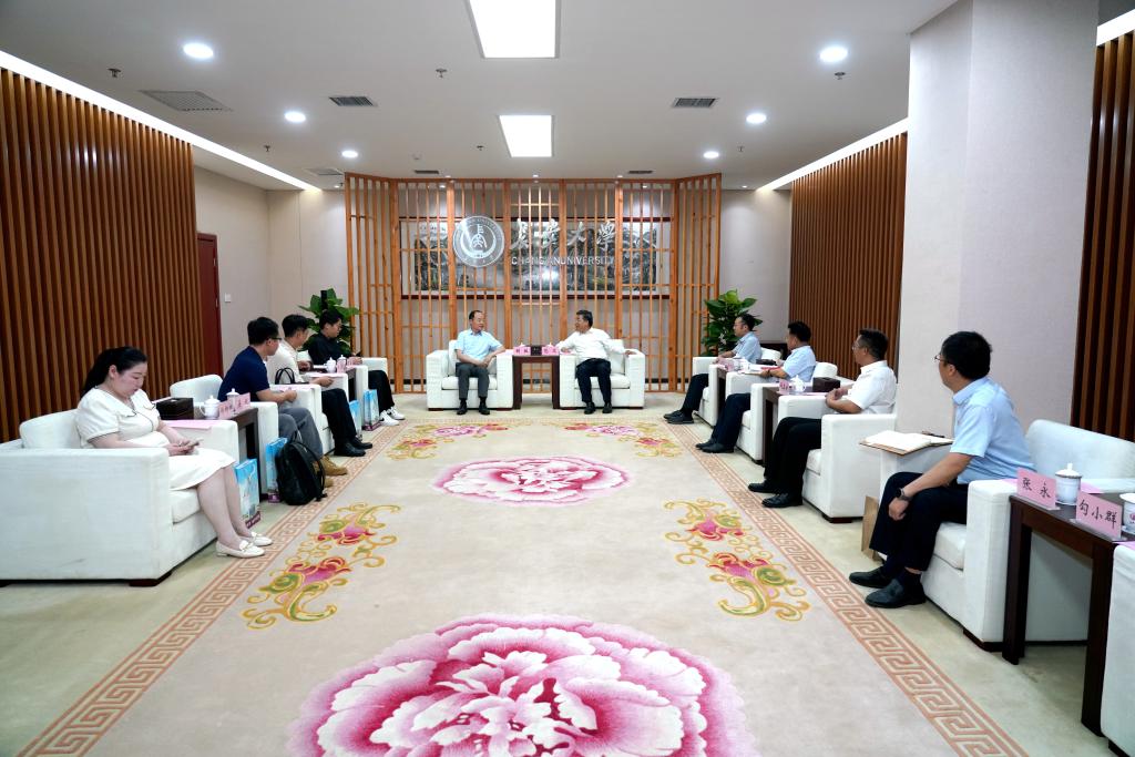 6月28日上午,新航道国际教育集团董事长胡敏教授一行到我校座谈交流。我校副校长范文在北校区北辰楼一层贵宾厅会见了胡敏教授一行。