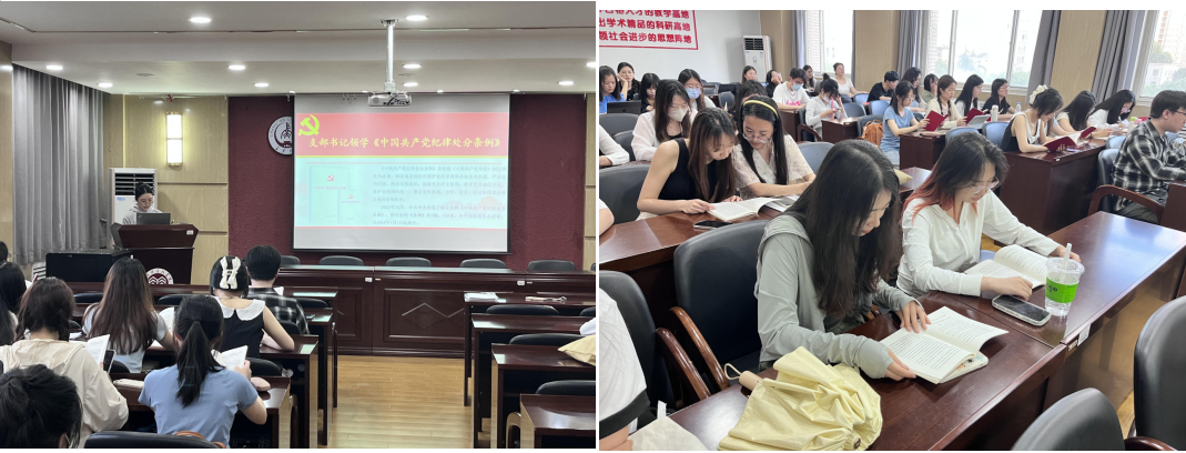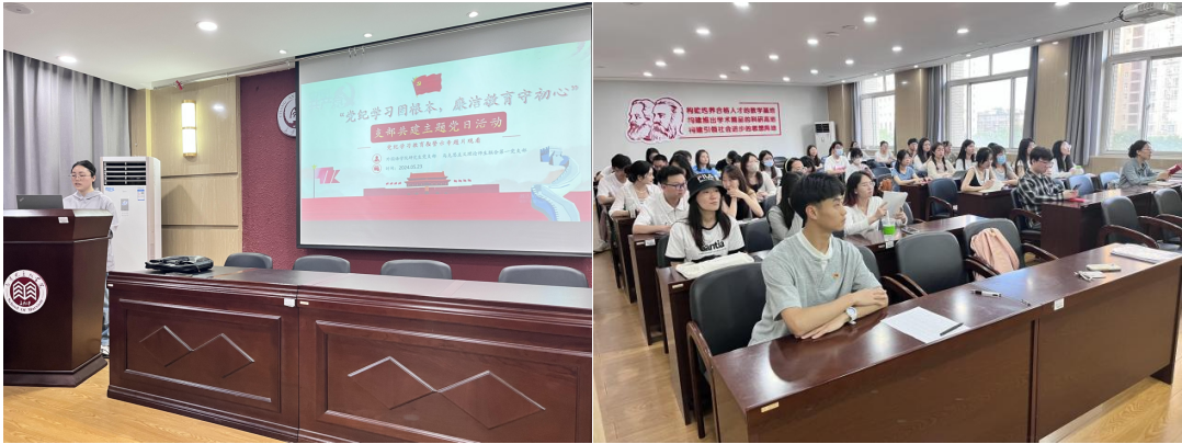 为深入学习宣传贯彻党的二十大精神,增强党员干部的党性和纪律意识,激发青年党员的向上活力,强化警示教育,筑牢思想防线,夯实自律根基,5月23日晚19:00,我院研究生党支部联合马克思主义学院师生联合第一党支部,在马克思主义学院503会议室开展“党纪学习固根本,廉洁教育守初心”支部共建主题党日活动。党支部全体研究生党员参与学习,活动由马克思主义学院师生联合第一党支部书记许婷主持。