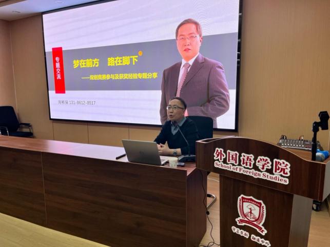 本次讲座特别邀请了国内创新创业领域的知名专家、西安建筑科技大学副教授周郴保担任主讲嘉宾。活动由英语系买轶林博士主持,英、日语系及其他感兴趣的教师积极参与。
