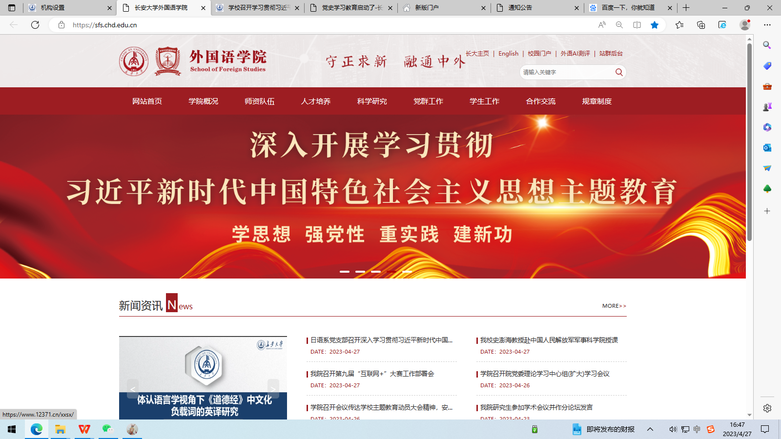 点击学院网站此页面即可链接到“学习贯彻习近平新时代中国特色社会主义思想主题教育”学习主页