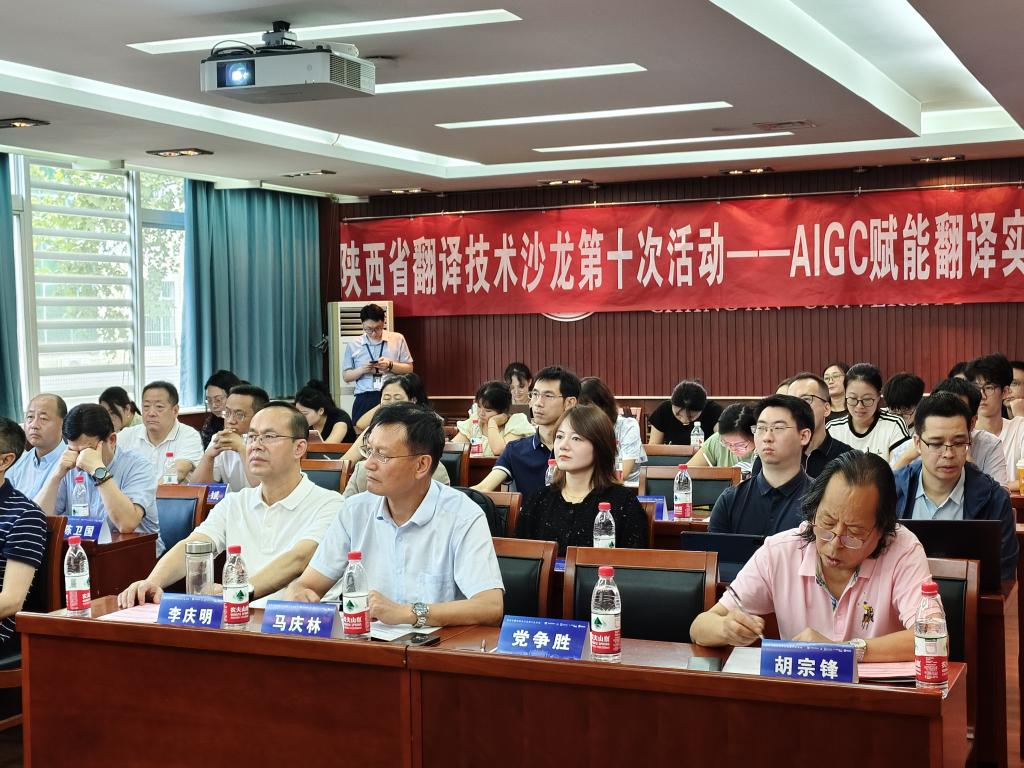 9月8日下午,由陕西省翻译协会指导,yl6776永利集团官网6776永利集团主办的陕西省翻译技术沙龙第十次活动在yl6776永利集团官网南校区学术交流中心成功举办。沙龙活动邀请行业资深专家和高校知名学者,围绕AIGC赋能翻译实践与翻译教学展开研讨交流。来自北京外国语大学、西安外国语大学、西安理工大学、西北政法大学、西安财经大学、西安石油大学、西安科技大学等省内外十余所高校的外语学院院系领导及百余名翻译专业师生线上线下同步参加了本次沙龙活动。开幕式由yl6776永利集团官网6776永利集团院长冯正斌教授主持,西安外国语大学党争胜教授、陕西省翻译协会主席胡宗锋教授致欢迎辞。