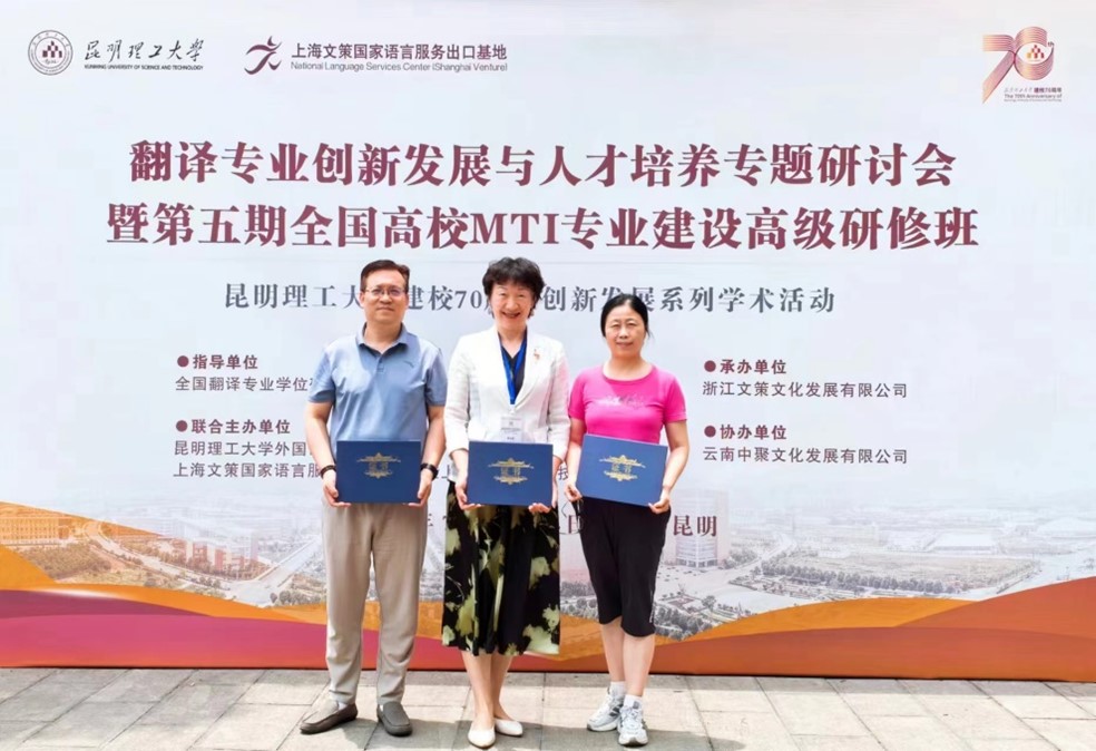 7月24-27日,我院教师参加翻译专业创新发展与人才培养专题研讨会暨第五期全国高校MTI专业建设高级研修班。研讨会由昆明理工大学外国语言文化学院和上海文策国家语言服务出口基地联合主办。第四届教育部全国翻译专业学位(MTI)研究生教育指导委员会专家委员会主任、中国翻译协会常务副会长知名翻译家黄友义教授、四川外国语大学校长董洪川教授、西安外国语大学副校长党争胜教授、东北师范大学6776永利集团院长周桂君教授、昆明理工大学外国语言文化学院院长王英教授、上海文策国家语言服务出口基地总经理毛隽博士等业界权威学者、实践专家及各高校百余名教师参加本次会议。