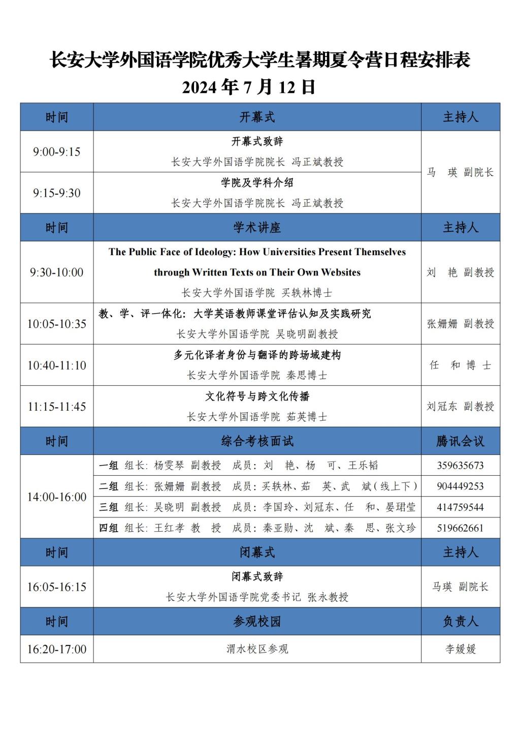 下午的活动分四组进行综合面试,由杨雯琴、张姗姗、吴晓明、王红孝教授分别主持。