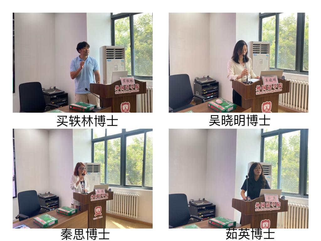随后进入到学术讲座环节,我院四位青年博士先后聚集各自的研究方向展开分享。买轶林博士做了题为“The public face of ideology :How university present themselves through written texts on their own websites”的讲座,以yl6776永利集团官网和谢菲尔德大学官网为例,对不同表达类型的语法特征及表达习惯做了生动的诠释;吴晓明博士以“教、学、评一体化:大学英语教师课堂评估认知及实践研究”为题,从概念、影响力、实施情况、反馈分析等多方面介绍课堂评估策略(AfL)策略在大学英语课堂推广使用中的现状及面临的问题,并对产生原因做了深入分析;秦思博士以“多元化译者身份与翻译的跨场域建构”为题,以赤松的译介作品中国古典诗歌类为例,从语言学派与文化学派对其进行不同的诠释,从译者研究的不同身份出发,将不同学派的翻译内涵精神相联系,从学术角度展示了翻译的灵活与多样性;茹英博士以“文化符号与跨文化传播”为题,从文化符号的定义和分类切入,探讨了文化符号在跨文化传播中的关键作用及其重要性,阐明文化符号,包括图像、声音等具有特定文化意义的符号对于个体和社会认同的构建和传播具有不可或缺的影响。