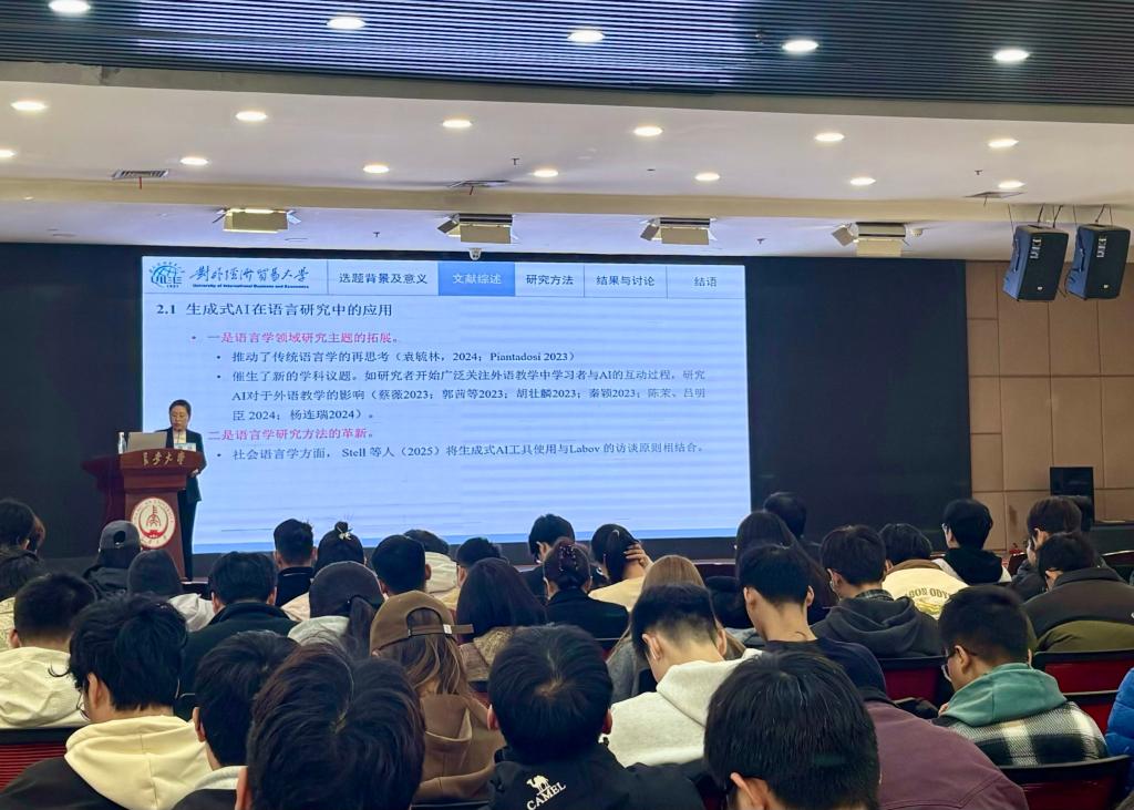 报告中,陈功从选题背景与意义、文献综述、研究方法、结果与讨论及结语五方面,系统解析AI与语言学研究的融合路径。她指出,以深度学习为核心的AI技术正引发跨领域变革,大语言模型不仅在自然语言处理领域表现突出,更推动语言学研究范式与工具革新。同时,AI发展始终依托语言学理论支撑,而面对大语言模型的突破,语言学在阐释其内在机制、破解语义逻辑难题上仍具不可替代的核心作用,二者形成“理论支撑—技术反哺”的良性互动。